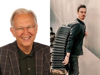 Begleitet wird er vom Vorarlberger Kulturpreisträger 2022, Raphael Brunner (Akk.).